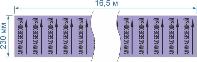 Опознавательная маркировочная лента фиолетовая с черной надписью Аммиак безводный и стрелкой 230мм x 16,5м