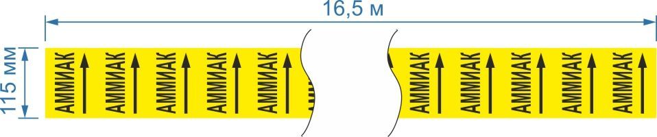 Опознавательная маркировочная лента желтая с черной надписью Аммиак и стрелкой 115мм x 16,5м