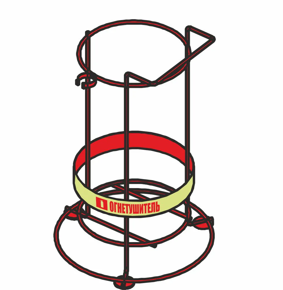 •    Конструкция из трех опор со смещенным центром тяжести обеспечивает устойчивость при размещении огнетушителя на полу в вертикальном положении, в том числе на не ровном полу .