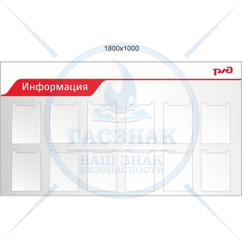 Стенд по охране труда для ОАО РЖД Охраны труда, металлокомпозит, 3 мм с профилем NIELSEN, с 6-ю карманами и перекидной системмой А4 на 10 рам.(1400х1200)