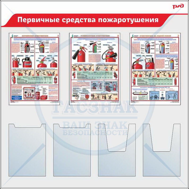 Стенд для ОАО РЖД Первая доврачебная помощь, 6 плакатов А3, 3 объемных кармана А4 (1500х1200; Пластик ПВХ 4 мм; Алюминиевый профиль)