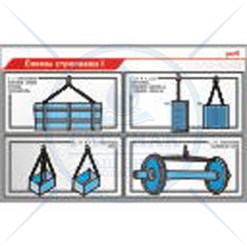 Стенд «Схемы строповки» профиль алюминиевый, плакаты А2, Пластик ПВХ 4 мм 1900х1100 мм (1900х1100; Пластик ПВХ 4 мм; Алюминиевый профиль)